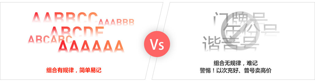AAAAAA、ABCDE、AAABBB、AAAAA、AAAA、ABCD、AABBCC、ABCABC等 這些號碼都是有規(guī)律、有等級的號碼,除此之外全都是普通號碼